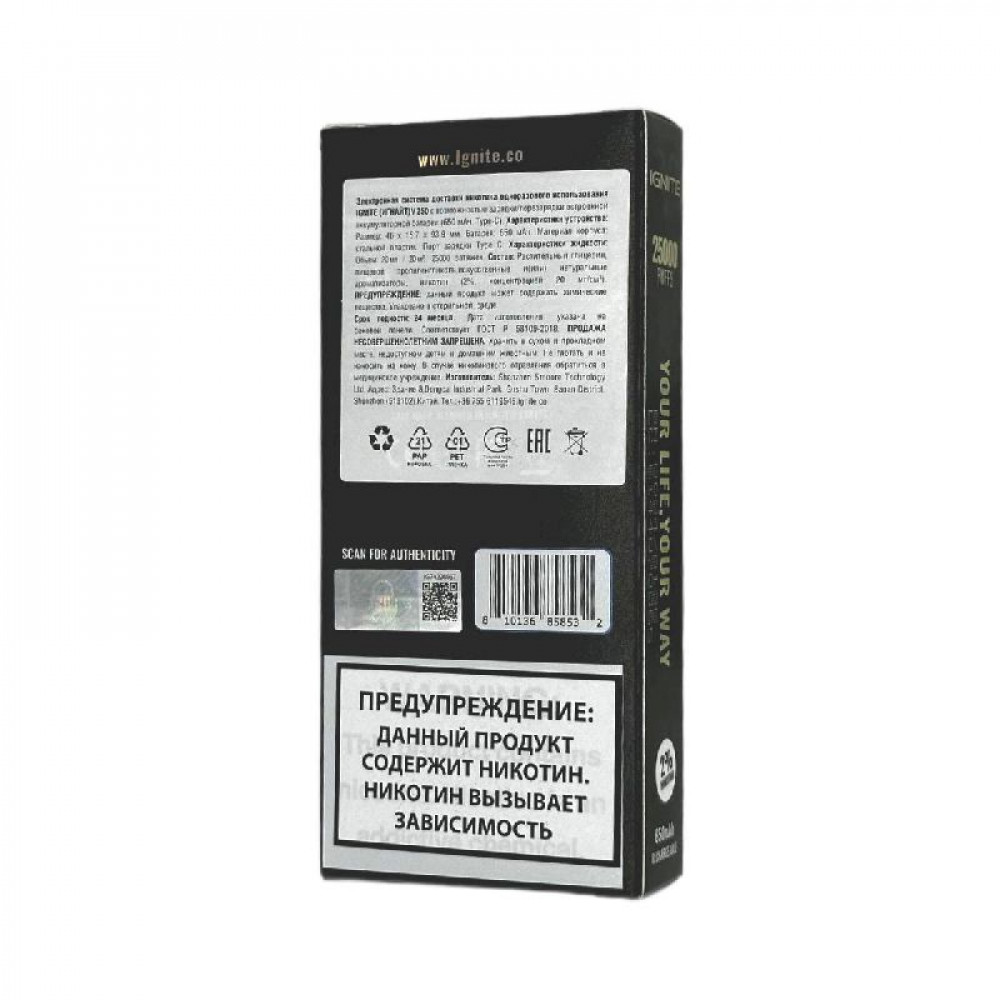 Технические характеристики Электронная сигарета Ignite V250 Gold 25000 - Banana Coconut Water (Банан кокосовая вода)