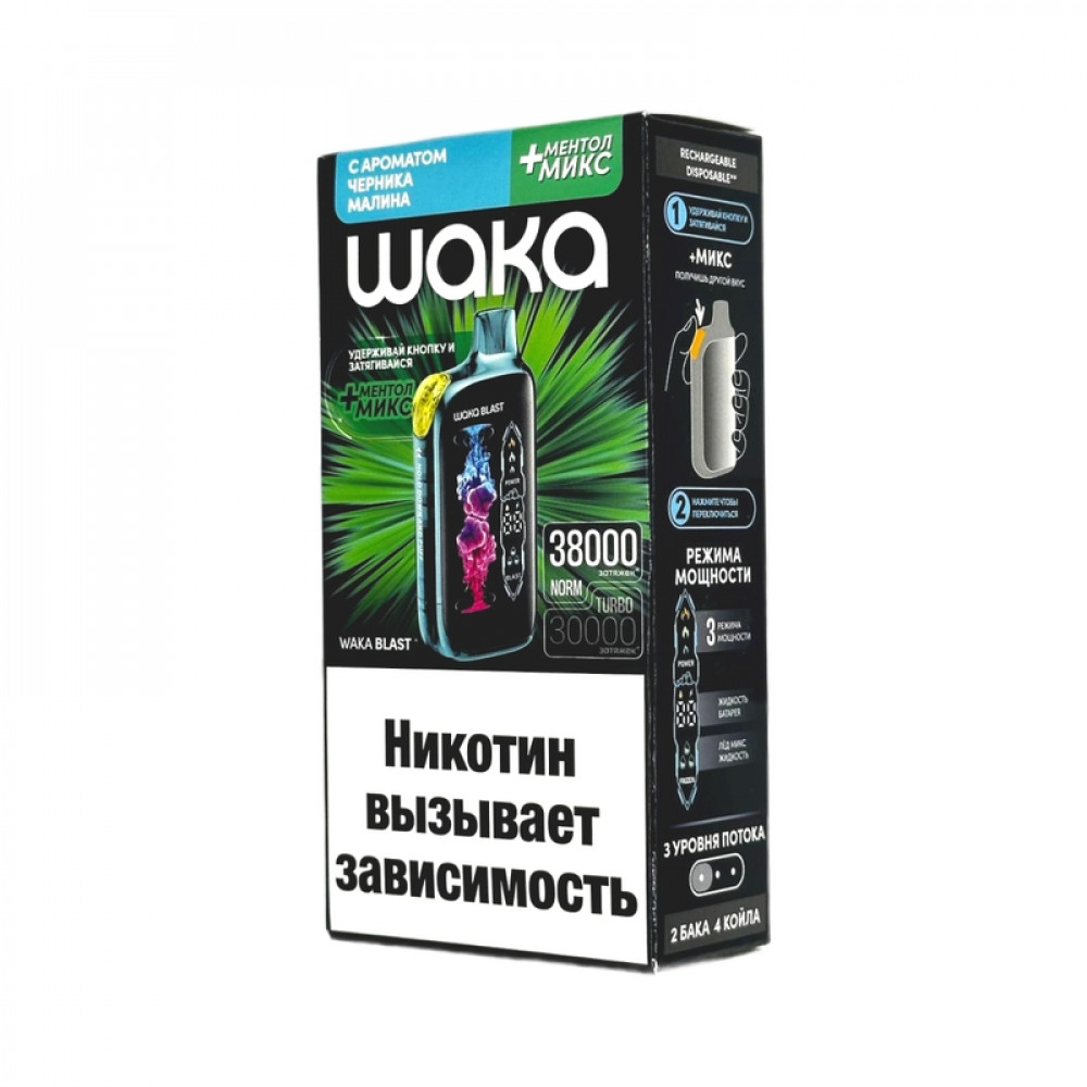WAKA BLAST 38000 Hard - Черника малина + ментол микс - купить в Реутове